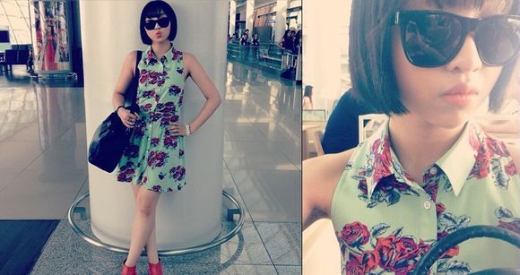 그룹 2NE1의 공민지가 꽃무늬 원피스의 공항패션을 선보였다.