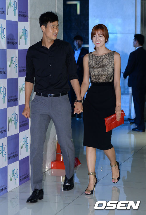 결혼식에 하객으로 참석한 정조국, 김성은 부부가 입장하고 있다.
