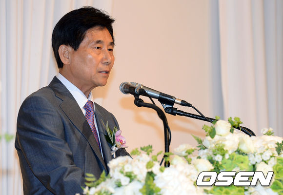 주례를 맡은 김정남 한국프로축구연맹 부총재가 주례사를 하고 있다.