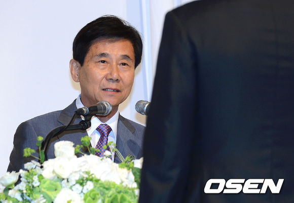주례를 맡은 김정남 한국프로축구연맹 부총재가 주례사를 하고 있다.