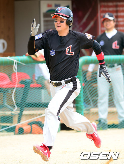 22일 오후 경기도 김포시 송일야구장에서 열린 '제4회 니베아 맨 컵 전국생활체육 야구대회' 로턱스와 배재의 경기 1회초 로턱스 김형신이 그라운드 홈런을 친 후 홈으로 달리고 있다.