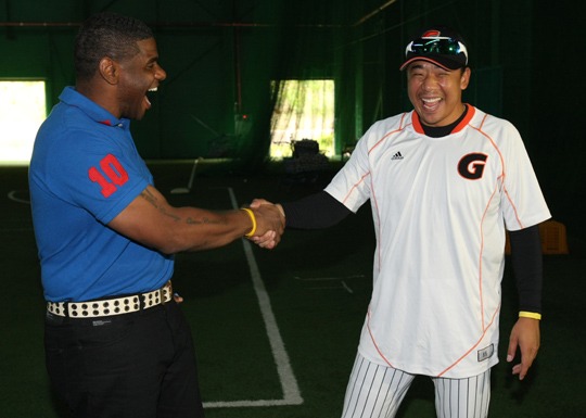 '검은 갈매기' 펠릭스 호세(전 롯데 외야수)가 22일 오전 11시 김해 상동구장을 방문하자 롯데 선수들이 따뜻한 마음을 전했다.