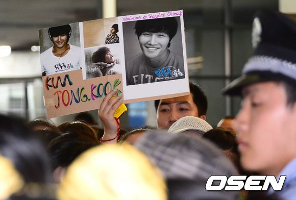 22일 JS파운데이션 주최로 홍커우 경기장에서 열리는 '삼성화재 2013 아시안드림컵' 자선 축구경기에 참석하는 런닝맨을 보기위해 수많은 팬들이 푸동 공항에 운집 런닝맨을 연호하고 있다.