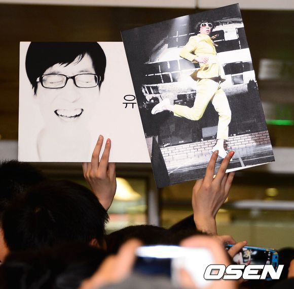 팬들이 유재석 플래카드를 들고 런닝맨을 연호하고 있다. /spjj@osen.co.kr