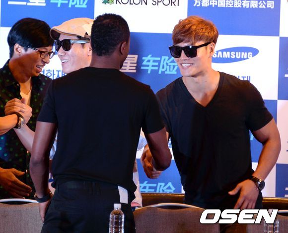 런닝맨 멤버 김종국이 에브라와 악수를 나누고 있다. /spjj@osen.co.kr