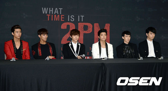 22일 오후 서울 잠실 실내체육관에서 진행된 2PM 아시아 투어 콘서트(2PM LIVE TOUR "What time is it)에 앞서 진행된 기자회견에서 2PM이 질문을 듣고 있다.