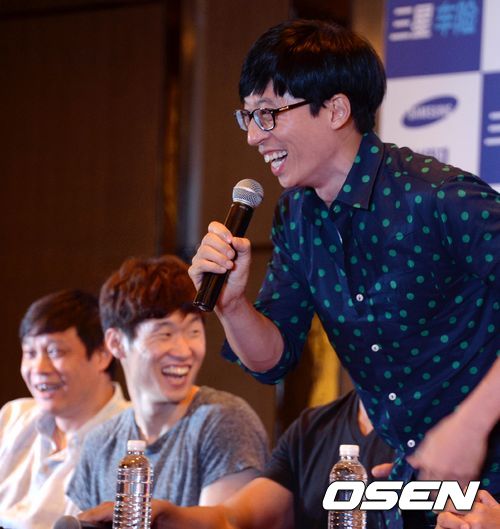 런닝맨 멤버 유재석이 수다를 떨자 박지성과 판즈이가 웃고 있다. /spjj@osen.co.kr