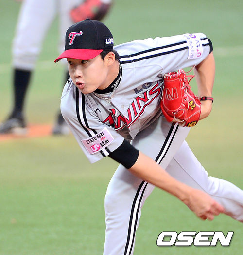 22일 오후 대구시민운동장 야구장에서 열린 2013 한국야쿠르트 세븐프로야구 삼성 라이온즈와 LG 트윈스의 경기, 3회말 무사 1,2루에서 LG 신재웅과 교체된 임찬규가 힘차게 공을 던지고 있다.