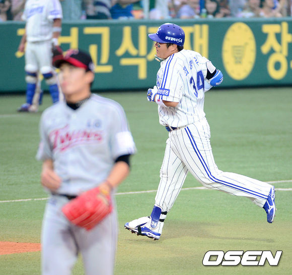 22일 오후 대구시민운동장 야구장에서 열린 2013 한국야쿠르트 세븐프로야구 삼성 라이온즈와 LG 트윈스의 경기, 4회말 1사에서 삼성 최형우가 우월 솔로홈런을 치고 그라운드를 돌고 있다.