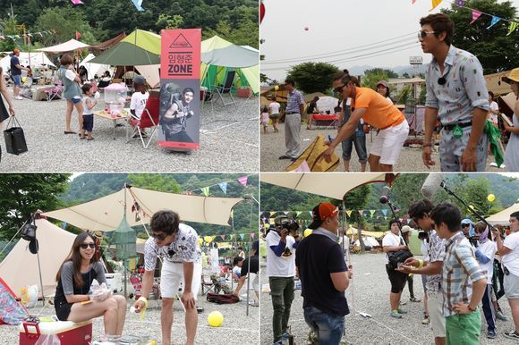 캠프의 시작은 텐트치기. 뜨거워지는 공기 때문에 송글송글 얼굴에 땀방울이 맺혔지만 캠퍼들은 호흡을 맞춰 빠른 속도로 집을 지어갔다. 줄을 당기는 어른들 뒤로 해맑게 뛰어노는 아이들의 모습이 목격됐다. 최근 높은 인기를 누리고 있는 MBC 예능 프로그램 '아빠 어디가'를 떠올리는 상황도 있었다. 아빠 손을 잡고 캠핑장을 둘러 보는 아이들, 엄마 품에 안겨 그늘에서 잠을 청하는 아이들도 있었다. 나무 그늘에는 해먹이 달렸다. 약간의 쉬는 시간을 가진 후 벼룩시장을 알리는 안내멘트가 방송됐다.