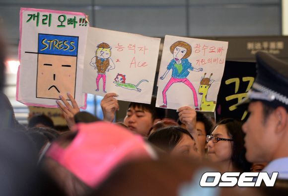 22일 JS파운데이션 주최로 열리는 '삼성화재 2013 아시안드림컵' 자선 축구경기 에 참가하는 런닝맨을 기다리는 팬들이 푸동 공항에 장사진을 이루고 있다.