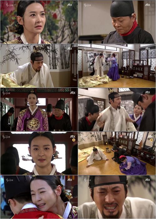 반면, 김인은 “그만 일어나시지요, 마마. 소인들의 처지가 매우 괴롭습니다”라며 강빈에게 재차 압력을 가했던 터. 결국 강빈은 “이 넓은 대궐에 누가 있어 저하를 지켜주겠느냐…내가 전하를 만나 뵙고 빌겠네”라고 김인에게 눈물 어린 간청을 했다. 그러나 김인은 “소인이 저하의 곁을 잠시도 떠나있지 않을 것”이라는 말로 강빈을 안심시켰고, 강빈은 김인의 약조를 받고는 마음을 결정한 듯 그 자리에서 일어났다.