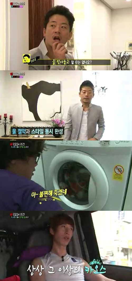 양상국이 청소를 하기 위해 찾은 동료 류정남의 집이 예상보다 심각하게 더러웠던 것. 이에 앞서 차에서 내리다가 그 무엇보다 소중한 물을 한 바가지 쏟고 난 후라 그의 얼굴에는 짜증 섞인 리얼한 표정이 그대로 드러나 더욱 관심을 모았다.