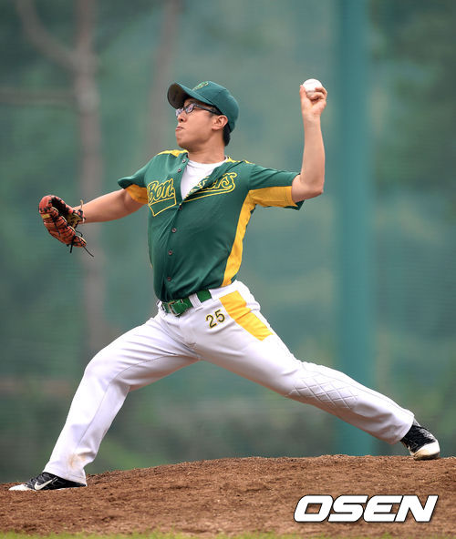 23일 오후 경기도 양평 신복리 야구장에서 열린 '제4회 니베아 맨 컵 전국생활체육 야구대회' 본스타즈와 수원슈퍼스타즈의 경기, 1회말 본스타즈 선발이 역투하고 있다.