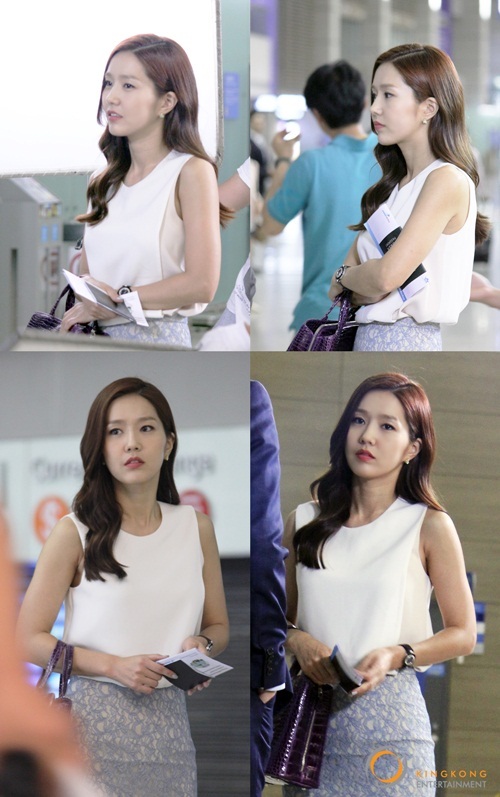SBS 주말드라마 '출생의 비밀'의 이진이 깔끔한 투피스로 세련된 공항패션을 연출했다.