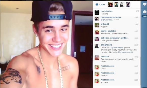 저스틴 비버가 21일 올린 동영상은 그가 “인스타그램에 동영상 서비스가 시작됐다”고 짧게 말하는 내용이 담겨있다. 이 동영상에서 그는 상의를 탈의한 채, 모자를 뒤집어 TM고 굵은 목걸이를 한 모습이다.