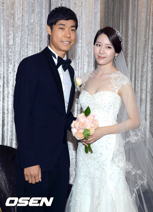중동 카타르 엘 자이시에서 뛰고 있는 축구선수 고슬기(27)가 23일 오후 서울 소공동 롯데호텔에서 한 살 연하 일반인 주아영씨와 화촉을 밝혔다.
