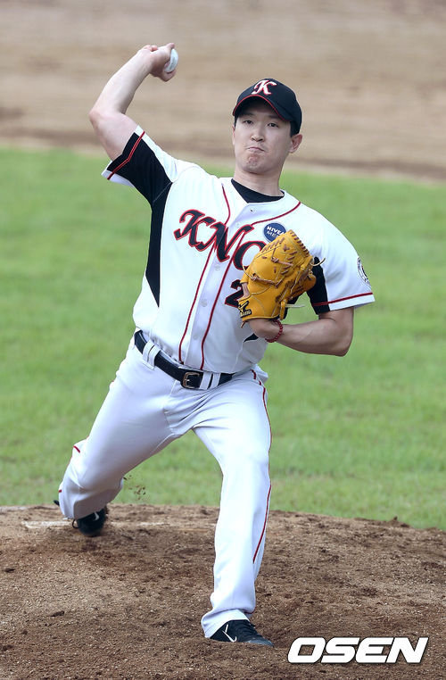 23일 오후 경기도 양평 신복리 야구장에서 열린 '제4회 니베아 맨 컵 전국생활체육 야구대회' 한국석유공사와 루트트윈스의 경기, 1회말 한국석유공사 선발 투수가 역투하고 있다.