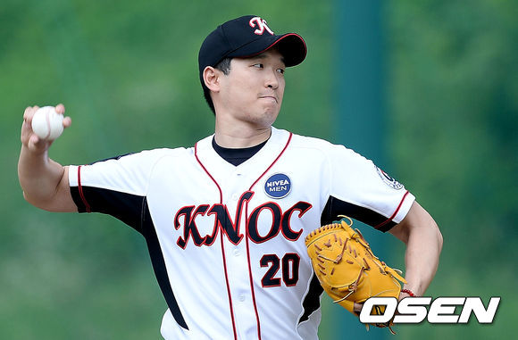 23일 오후 경기도 양평 신복리 야구장에서 열린 '제4회 니베아 맨 컵 전국생활체육 야구대회' 한국석유공사와 루트트윈스의 경기, 1회말 한국석유공사 선발 투수가 역투하고 있다.