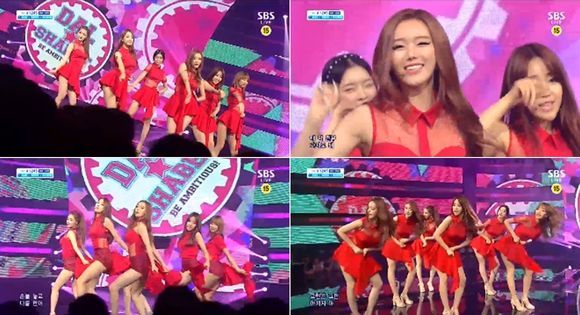 달샤벳은 23일 오후 방송된 SBS 가요프로그램 '인기가요'에 출연해 신곡 '내 다리를 봐'를 열창했다. 이들은 몸에 밀착된 빨간색 의상으로 강렬한 인상을 자아냈다. 특히 옷 일부를 시스루로 디자인, 섹시한 매력을 더욱 강조했다.