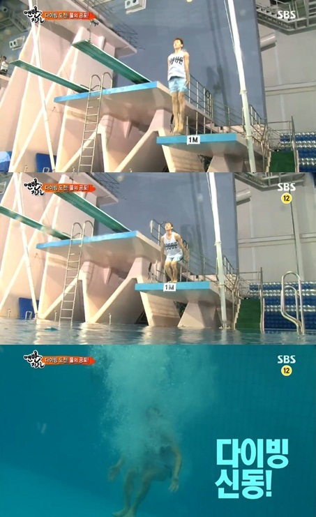 은혁은 23일 오후 방송된 SBS '일요일이 좋다-맨발의 친구들'(이하 맨발의 친구들)에서 단점 극복 프로젝트의 일환으로 다이빙에 도전했다.