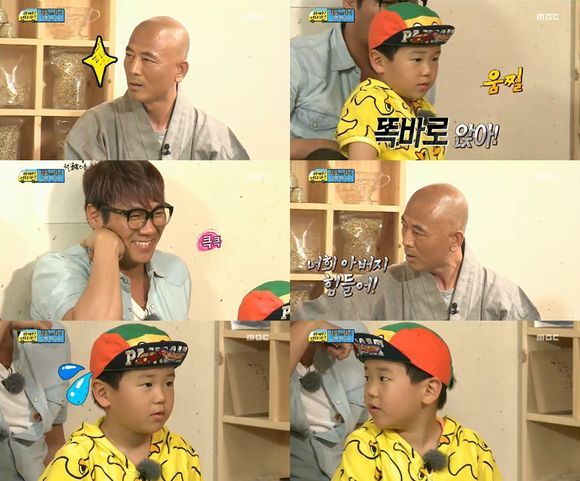 이에 윤후는 잔뜩 겁을 먹고 자세를 고쳐 앉았고 윤민수는 잔뜩 겁 먹은 후를 보며 웃음을 참지 못했다.