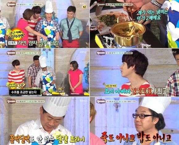 이지훈, 송준근, 유민상의 아버지는 라면 요리를 준비했다. '심리학적 측면에서' 감자를 넣었다고 밝힌 송준근 아버지의감자라면 요리는 의외로 호평을 받았다. 이지훈의 아버지도 면발의 식감을 강조한 라면으로 MC 이영자의 마음을 얻었다.
