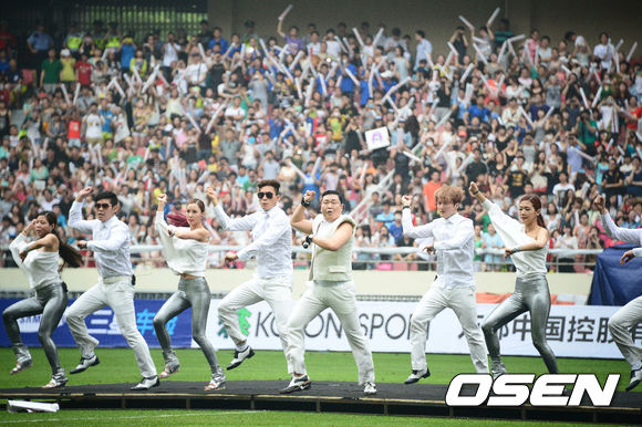 가수 싸이가 하프타임때 축하공연을 하고 있다. /spjj@osen.co.kr