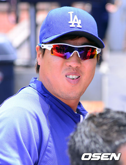 24일 새벽(한국시간) 미국 캘리포니아 샌디에이고 펫코파크에서 열린 2013 메이저리그 샌디에이고 파드리스와 LA 다저스의 경기에 앞서 다저스 류현진이 미소 짓고 있다.