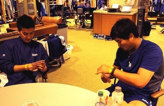 류현진은 24일 자신의 트위터에 사진 한 장과 함께 '시간 남을 땐 형이랑 카드놀이'라는 멘션을 남겼다. 사진은 류현진이 라커룸에서 의자에 앉아 통역을 맡고 있는 다저스 구단 직원 마틴 김과 카드놀이를 즐기는 모습이다.