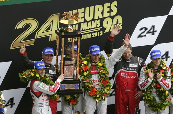 아우디가 르망 24시간 레이스에서 우승기록을 새로 쓰고 있다. 아우디의 디젤 하이브리드 레이싱카 '아우디 R18 e-트론 콰트로’가 23일(현지시간) 프랑스 르망에서 종료된 '르망 24시간 레이스'에서 1위와 3위를 차지했다. 이번 우승은 대회 통산 총 12회 우승이라는 대기록이기도 하다.