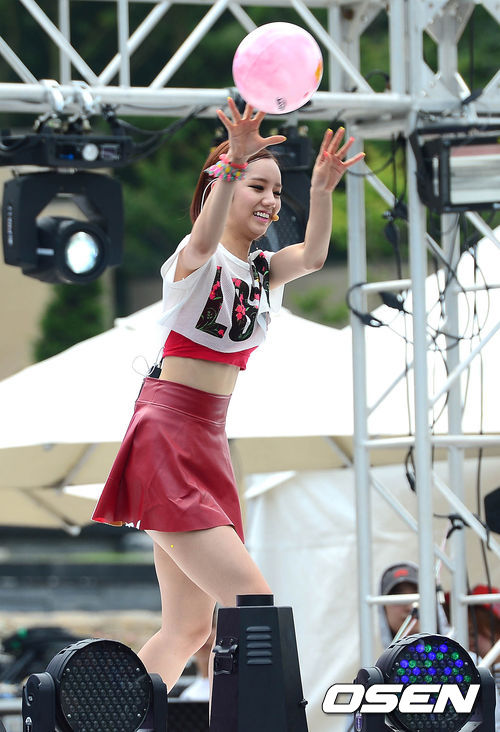 24일 오후 서울 장충동 반얀트리 호텔 야외 수영장에서 열린 걸스데이 쇼케이스에서 혜리가 사인볼을 팬들에게 던져주고 있다.