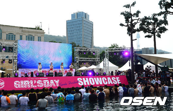 걸스데이가 아이돌그룹 최초로 신보 발매 기념 쇼케이스를 수영장에서 개최했다.