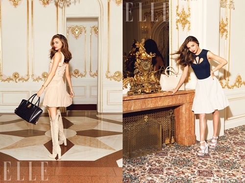 24일 공개된 패션매거진 엘르 7월호 화보 속 미란다 커는 세계적인 클래스의 모델답게 아름다운 포즈를 취해 감탄을 자아냈다. 누드 톤의 원피스를 입고 블랙 컬러의 가방을 든 채 카메라를 향해 매혹적인 눈빛을 보내는 미란다 커의 모습은 톱 모델다운 분위기를 그대로 보여준다.