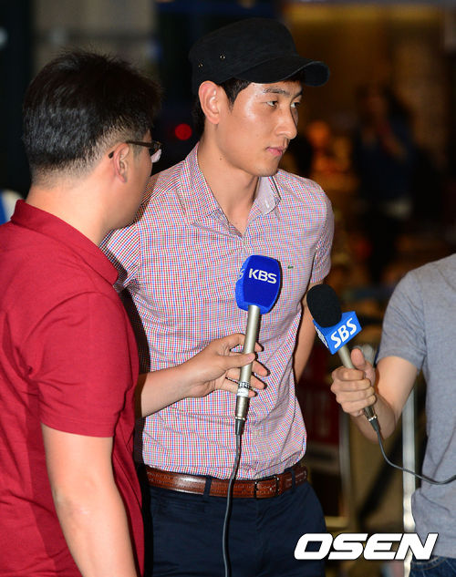 지동원이 귀국장을 나서며 인터뷰 준비를 하고 있다.