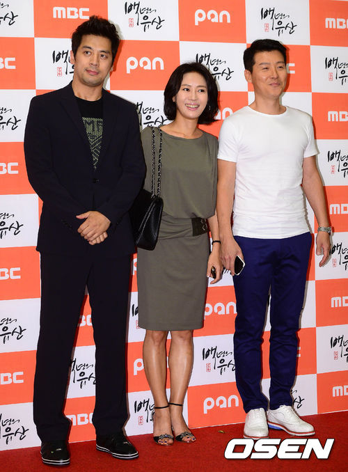 24일 오후 서울 여의도 63시티에서 열린 MBC 주말드라마 '백년의 유산' 종방연에서 권오중, 김희정, 이현우가 포토타임을 갖고 있다.