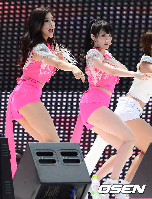 24일 오후 서울 장충동 반얀트리 호텔 야외 수영장에서 열린 걸스데이(소진,민아,유라,혜리) 쇼케이스에서 걸스데이 소진, 유라가 공연을 펼치고 있다.