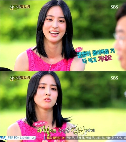 또 한혜진은 수입관리에 대해 "4월까지 번 돈은 어머니께 다 드리고, 5월부터 내꺼"라며 "'힐링캠프'에서 6월에 입금해 줘서 너무 감사하다"고 재치 있게 말했다.