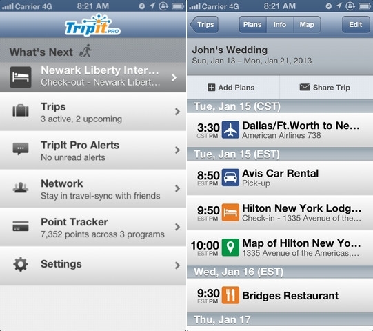 비행기를 많이 타는 여행이거나, 숙소를 자주 바꾸는 여행을 결정했다면, 트리핏(TripIt - Travel Organizer, 무료)이 유용하다. 이 앱을 이용하면 이메일로 받은 비행기 표, 숙소 바우처 등을 한번에 관리할 수 있다. plans@tripit.com으로 보내면, 자동으로 여행지에서의 모든 스케줄을 현지 시간에 맞춰서 저장하고 관리하는 것이 가능해 편리하다.