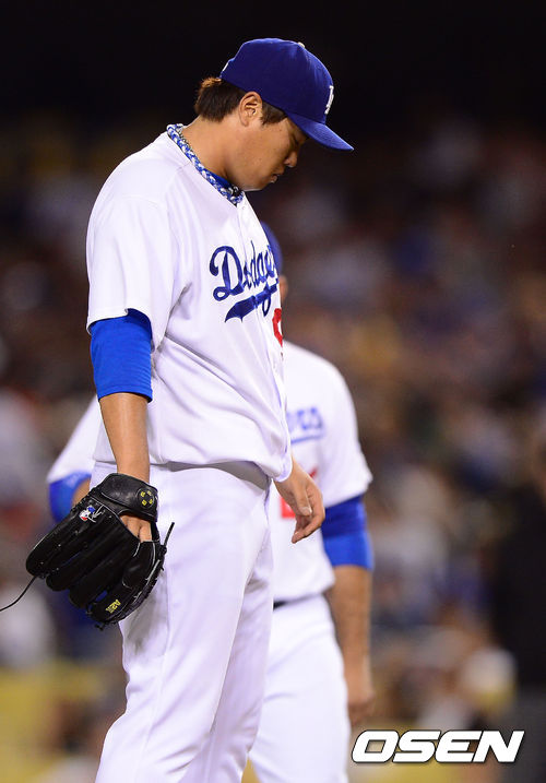 7회초 2사 류현진이 교체되자 아쉬워하고 있다 / soul1014@osen.co.kr