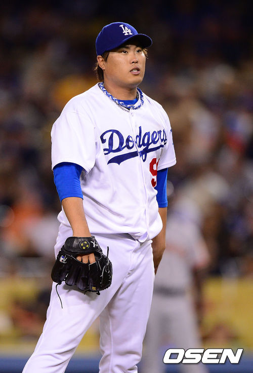 7회초 1사 다저스 류현진이 샌프란시스코 스쿠타로에게 연속 볼을 던진후 아쉬워하고 있다. / soul1014@osen.co.kr