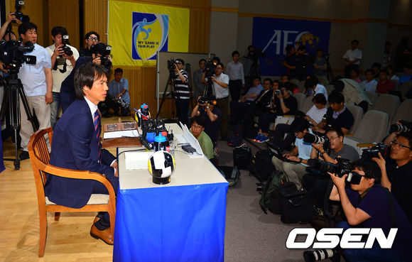 25일 오후 경기 파주시 탄현면 파주NFC 회의실에서 열린 홍명보(44) 축구대표팀 신임 감독 기자회견에서 홍명보 감독이 질문에 답하고 있다.