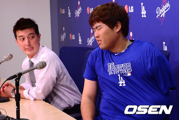 경기종료 후 기자회견에서 류현진이 계속되는 질문에 익살스러운 표정을 짓고 있다. / soul1014@osen.co.kr