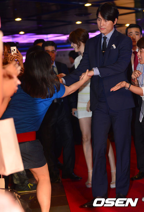 배우 정우성과 한효주가 25일 밤 서울 삼성동 메가박스 코엑스에서 열린 영화 '감시자들'(감독 조의석 김병서) VIP 시사회에 참석해 레드카펫을 밟으며 팬들과의 만남을 갖고 있다.