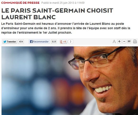 하지만 이들의 영입이 모두 수포로 돌아갔고, PSG는 결국 프랑스 레전드인 블랑을 선택했다. 블랑은 과거 1980년대 후반부터 2000년까지 레블뢰 군단에서 르네상스의 한 축을 담당했던 프랑스의 레전드다.