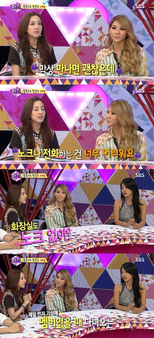이날 산다라박은 “낯을 가려서 멤버들 방문 노크하는 것도 방해될까봐 하지 못한다”며 “막상 만나면 수다를 떠는데 직접 노크하거나 전화는 불편하다. 그래서 멤버들에게 할 말이 있을 때 노크 대신 밖에서 냄비를 친다”고 털어놓았다.