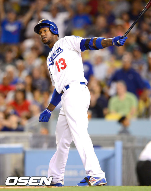 [OSEN=로스앤젤레스, 곽영래 기자] 26일(한국시간) 미국 캘리포니아주 로스앤젤레스 다저스타디움에서 열린 2013 미국 메이저리그 LA 다저스와 샌프란시스코 자이언츠의 경기, 6회말 1사 2루 다저스 라미레스가 2점 홈런을 날리고 타구를 바라보고 있다