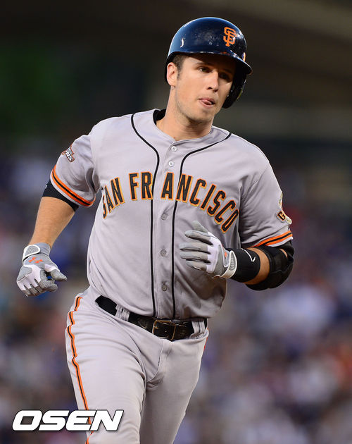 [OSEN=로스앤젤레스, 곽영래 기자] 26일(한국시간) 미국 캘리포니아주 로스앤젤레스 다저스타디움에서 열린 2013 미국 메이저리그 LA 다저스와 샌프란시스코 자이언츠의 경기, 4회초 샌프란시스코 포지가 솔로포를 날리고 베이스를 돌고 있다
