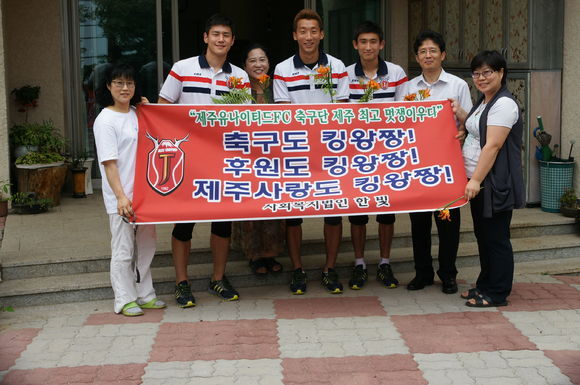 이에 따라 제주 선수단은 홈 경기 승리 시 자신과 협약을 맺은 후원사(18개 업체)가 제공한 후원품(현물, 현금, 상품권, 기타 재능 기부 등)을 경기 후 소외/다문화/독거노인 계층에 직접 찾아가 전달하고 있다. (2013시즌 홈 경기 20경기 기준)