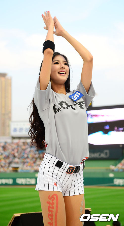 26일 오후 부산 사직구장에서 열린 2013 한국야쿠르트 세븐프로야구 롯데 자이언츠와 NC 다이노스의 경기, 롯데 치어리더 박기량이 무대 위에서 화려한 공연을 펼치고 있다.